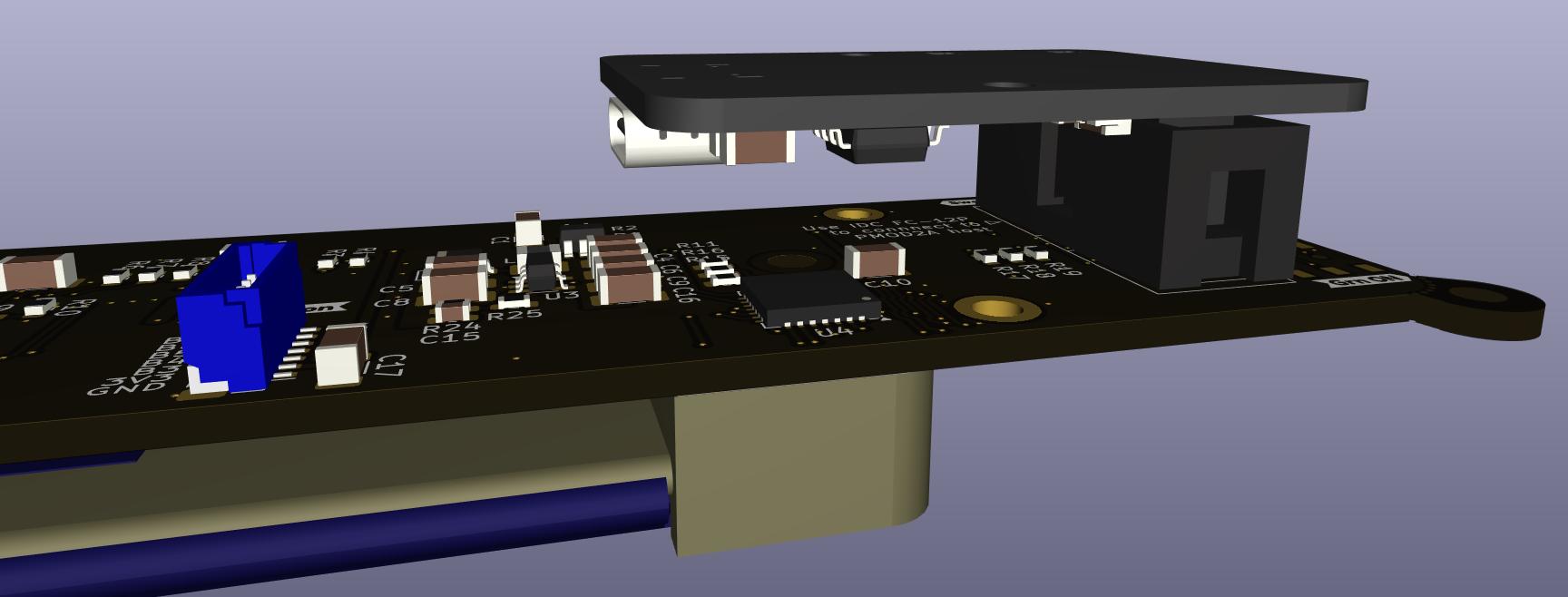 Render of the installed ui_to_usb addon board.